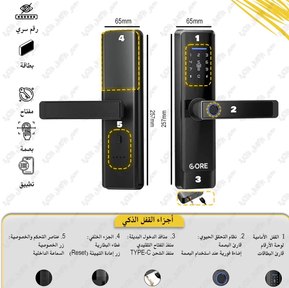 • اسم المنتج: قفل ذكي L1F من CORE بنظام BT TTLOCK