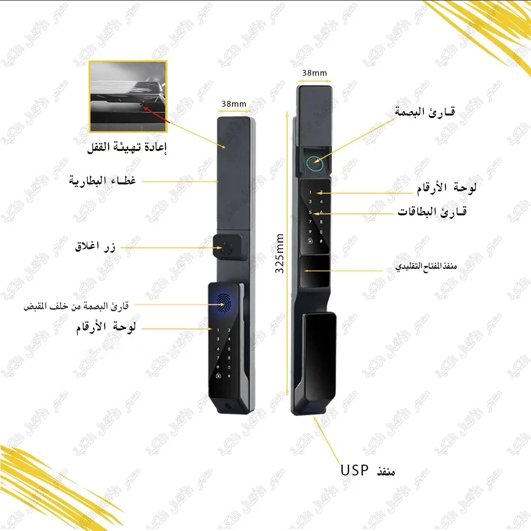 يعمل على 4 بطاريات من مقاس AA . تأكد من عدم نفاد الطاقة ولا تقلق في حال نفادها حيث بإمكانك الدخول عن طريق المفتاح التقليدي أو تشغيل القفل عن طريق منفذ الـ TYPE C للدخول الطارئ وليس لشحن القفل