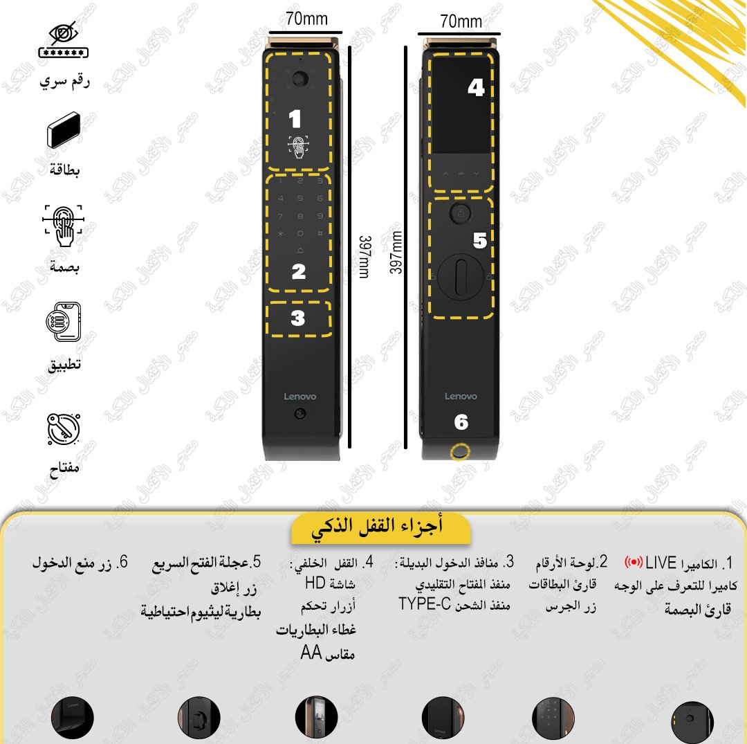 🔒 أمان متعدد الطرق: بصمة، رمز، بطاقة، مفتاح وتطبيق ذكي.